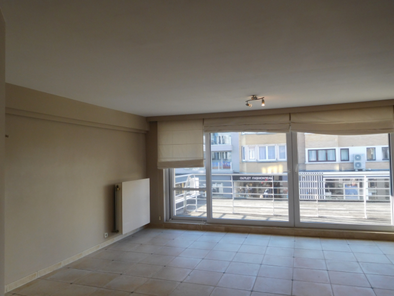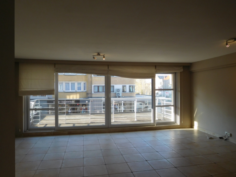 Ruim ongemeubeld woonappartement in hartje Koksijde, gelegen in de winkelstraat en op een boogscheut van het strand.