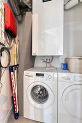 - berging voorzien voor wasmachine en droogkast ;