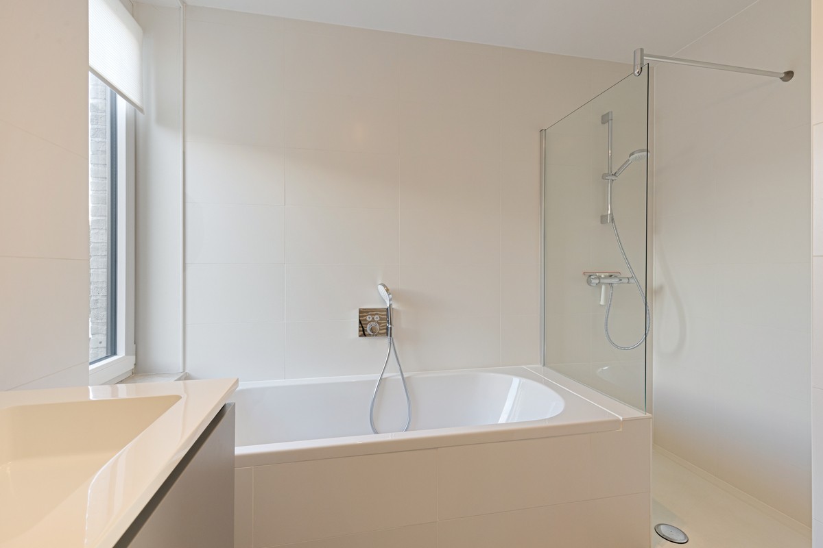 - badkamer met ligbad, inloopdouche en dubbele wastafel ;