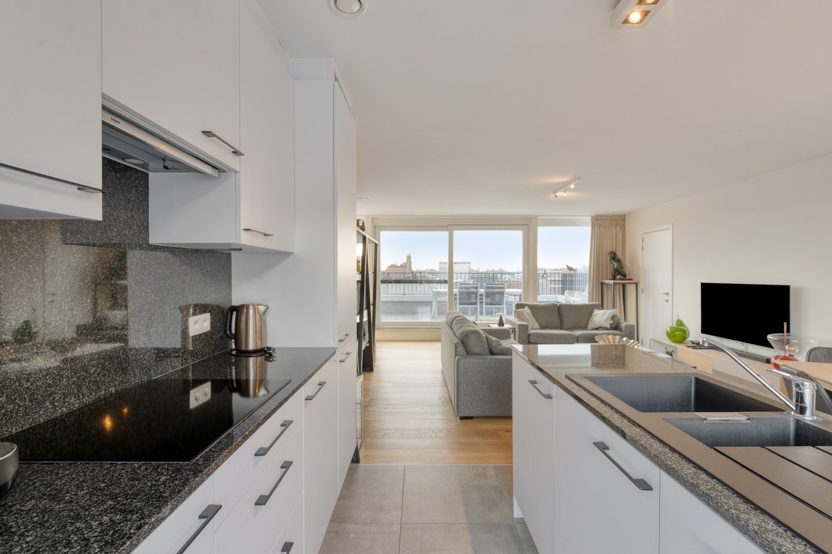 - lichtrijke woonkamer met open keuken en zonneterrassen ;