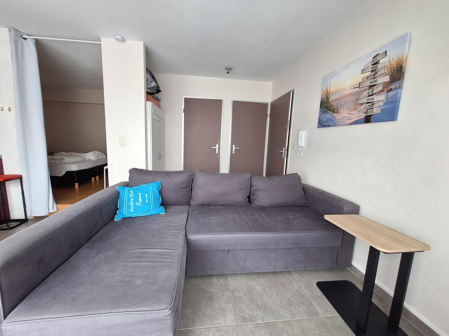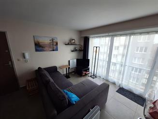 Deze studio met één slaapkamer, is gelegen op de 4de verdieping met een zicht op de zee vanuit de leefruimte.