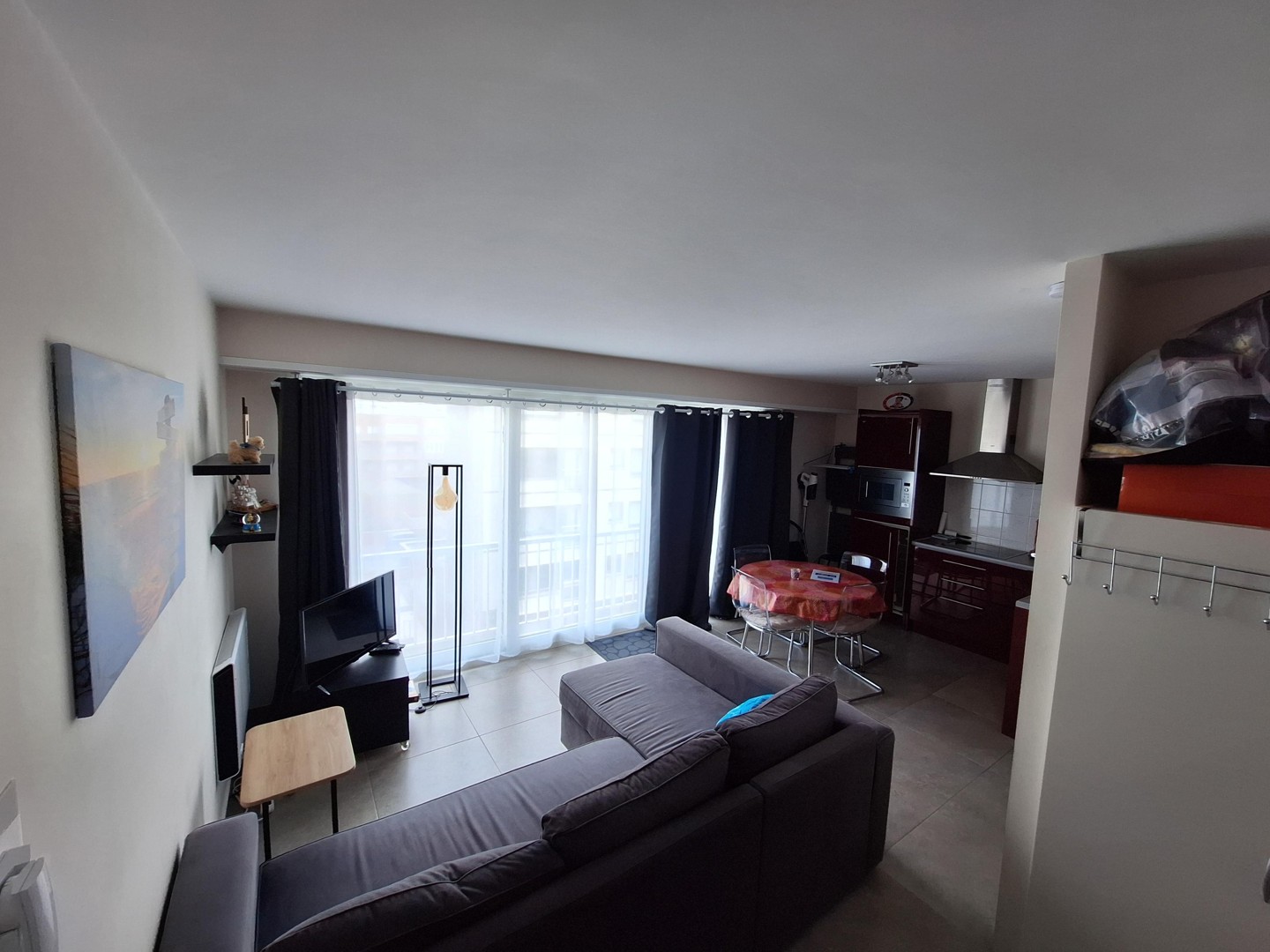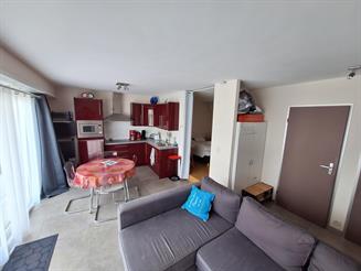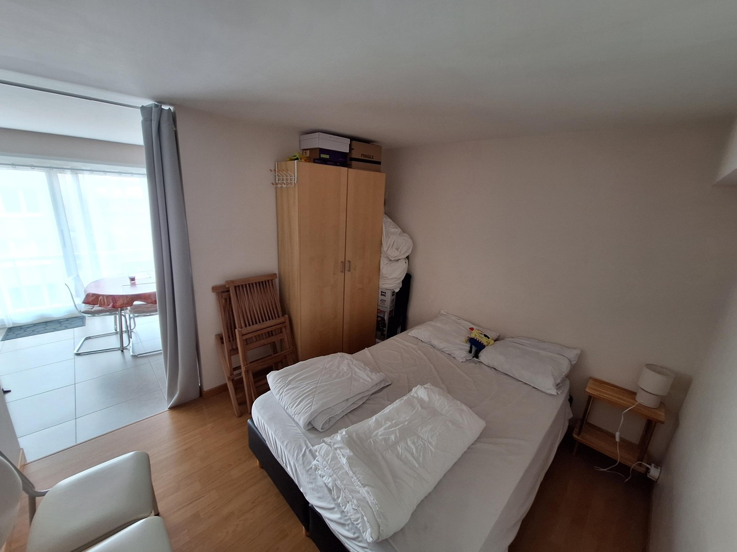 Deze studio met één slaapkamer, is gelegen op de 4de verdieping met een zicht op de zee vanuit de leefruimte.